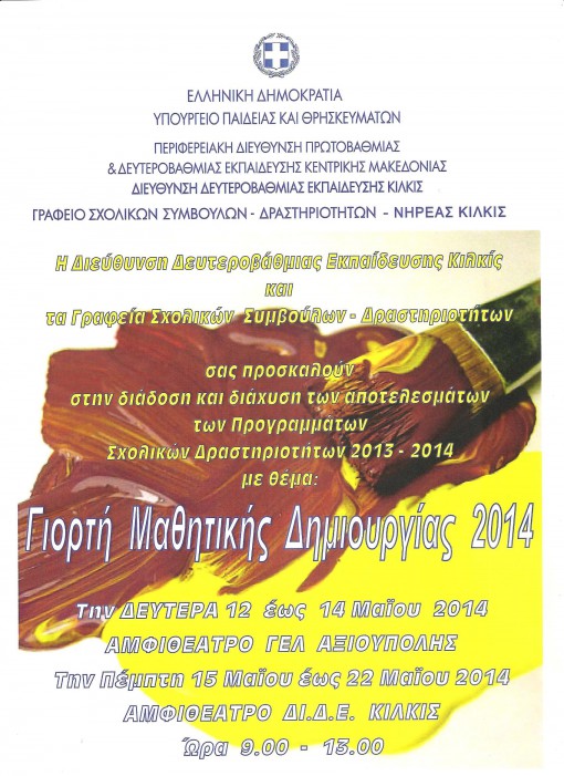 Τη Δευτέρα 12 Μαΐου 2014 και την Τετάρτη 14 Μαΐου 2014 στην αίθουσα εκδηλώσεων του Γενικού Λυκείου Αξιούπολης πραγματοποιήθηκε εκδήλωση παρουσίασης των δράσεων των ομάδων των σχολείων Παιονίας, με τίτλο «Γιορτή Μαθητικής Δημιουργίας 2014» που διοργάνωσε το γραφείο Σχολικών Δραστηριοτήτων Ν. Κιλκίς.