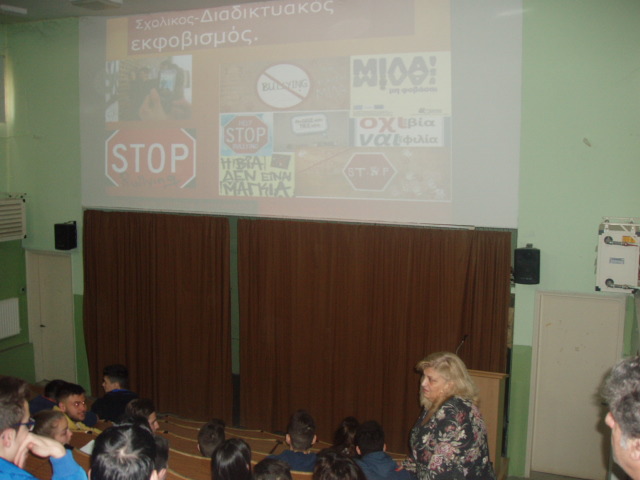 Την Παρασκευή 6 Μαρτίου 2015 πραγματοποιήθηκε εκδήλωση στο αμφιθέατρο του σχολείου με τη συμμετοχή όλων των μαθητών και του Συλλόγου Διδασκόντων με αφορμή την Πανελλήνια Ημέρα κατά της Σχολικής Βίας. Την παρουσίαση ανέλαβαν μαθητές του τμήματος Α2 οι οποίοι είχαν ασχοληθεί στο πλαίσιο της ερευνητικής εργασίας με το σχολικό εκφοβισμό. Ακολούθησε συζήτηση και βιωματική προσέγγιση του θέματος.